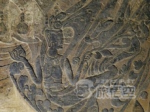 1500年という長い歳月の間に大部分が破壊されてしまいましたが、5窟の中で最大のものは、第一窟で、間口、奥行きとも6.5m、高さ6mに及びます。第二窟と第三窟の間には、幅27mの岸壁があり、そこに写真などでお馴染みの三尊仏が彫刻されていまする。この他に、小さい仏像は1000点ほど、彫像276点、石刻7759点が現在保存されています。 |