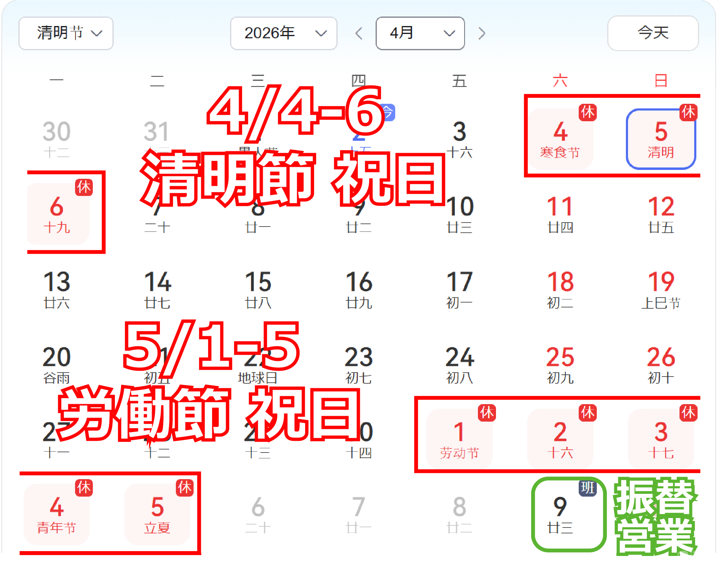 何卒ご理解のほどお願い申し上げます。 ーーーーーーーーーーーーーーーーーーーーーーーーーーーーーー 【清明節の営業体制のご連絡】