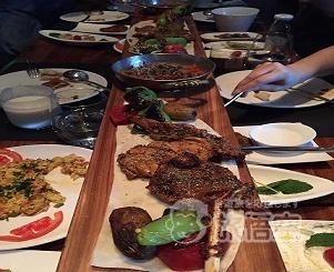 ミントのサラダも爽やかで美味。 温菜は、ブランチらしく卵料理やホタテのグリル。 ~茄子のパンケーキ~は少しピリ辛で、もちっとした食感。後を引く美味しさです。お酒にも合いそうな一品。 メイン ~ラム&チキンケバブ~は、ど~んと、長い板でサーブされます。迫力があり、面白いプレゼンテーション! お肉は香辛料たっぷりで柔らかくて美味でした。 デザートに暖かい~フォンダンショコラ~フルーツも付いて、ボリューム満点のコース。 ドリンクに ~ラッシー~を。塩味でさっぱり、お肉料理には欠かせません。 ワインやカクテル、トルコ酒のラキも数種類ありました。平日ランチコースもあるそうです。 ※要予約 |